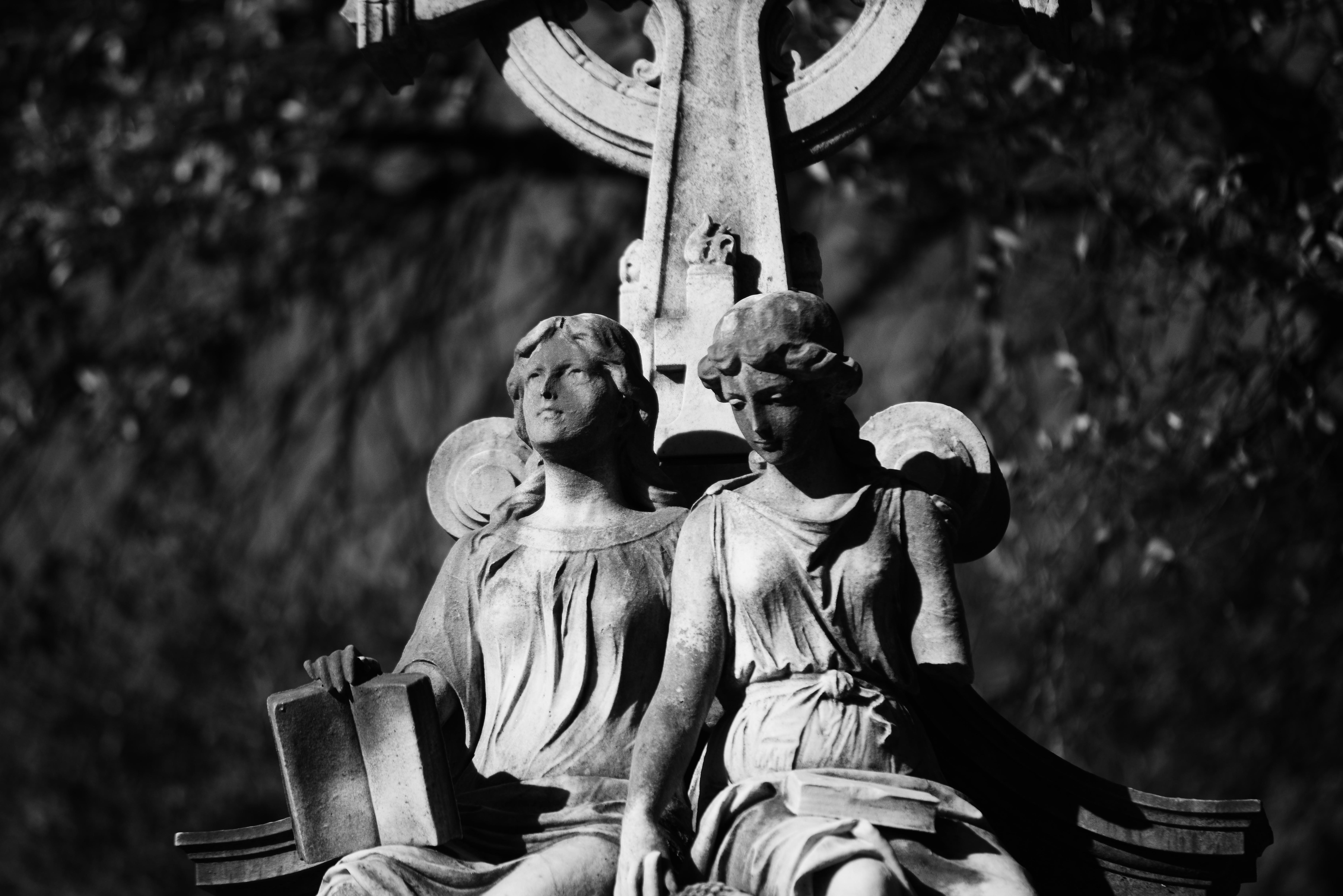 Through high-contrast monochrome, I explore the humanity carved into the inorganic. This collection traces the emotional spectrum of the stillness: from the "quiet wonders of one" resting in shadow to the "final reach of another" yearning for the sky. Here, the stone breathes, the marble mourns, and the silence speaks.